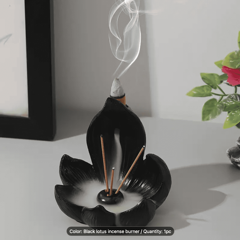 Resin Lotus Flower Incense Holder – Black – Rs550